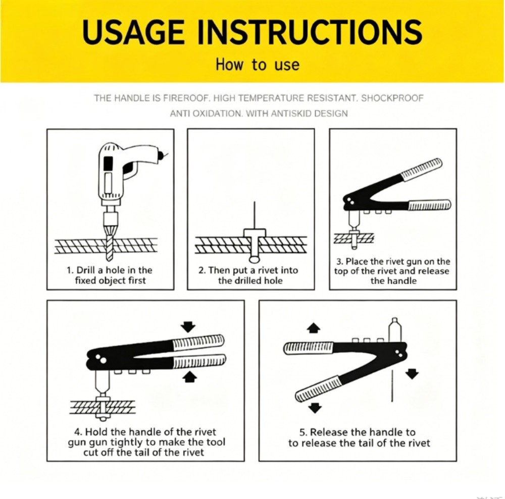 No necessiteu una eina de reblons específica per instal·lar reblons cecs. A continuació es mostren mètodes manuals segurs i repetibles que utilitzen eines domèstiques o de taller comunes.
